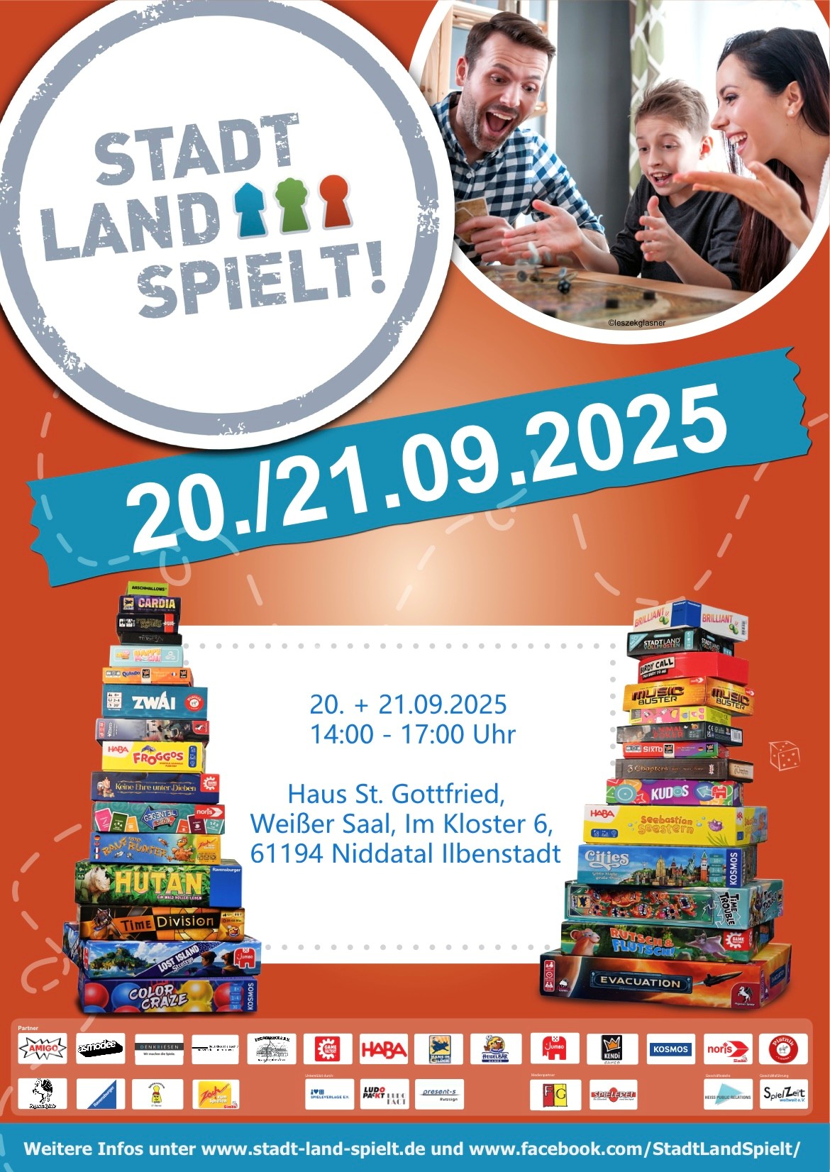 Am Wochenende des 20. und 21. September 2025 findet in Niddatal das Event "Stadt-Land-Spielt!" statt. Veranstaltungsort ist der Weiße Saal im Haus St. Gottfried, gelegen in der Straße Im Kloster 6. Dieses jährliche Event dient der Förderung des Kulturguts Spiel und bietet Spielbegeisterten aller Altersgruppen die Möglichkeit, neue Spiele zu testen oder einfach mit Freunden zu spielen. Organisiert wird das Event von der Katholisch Öffentlichen Bibliothek St. Petrus und Paulus Ilbenstadt. Begeisterte Besucher können sich auf ein vielfältiges Programm freuen, das Jung und Alt zusammenbringt und die Freude am Spiel feiert.