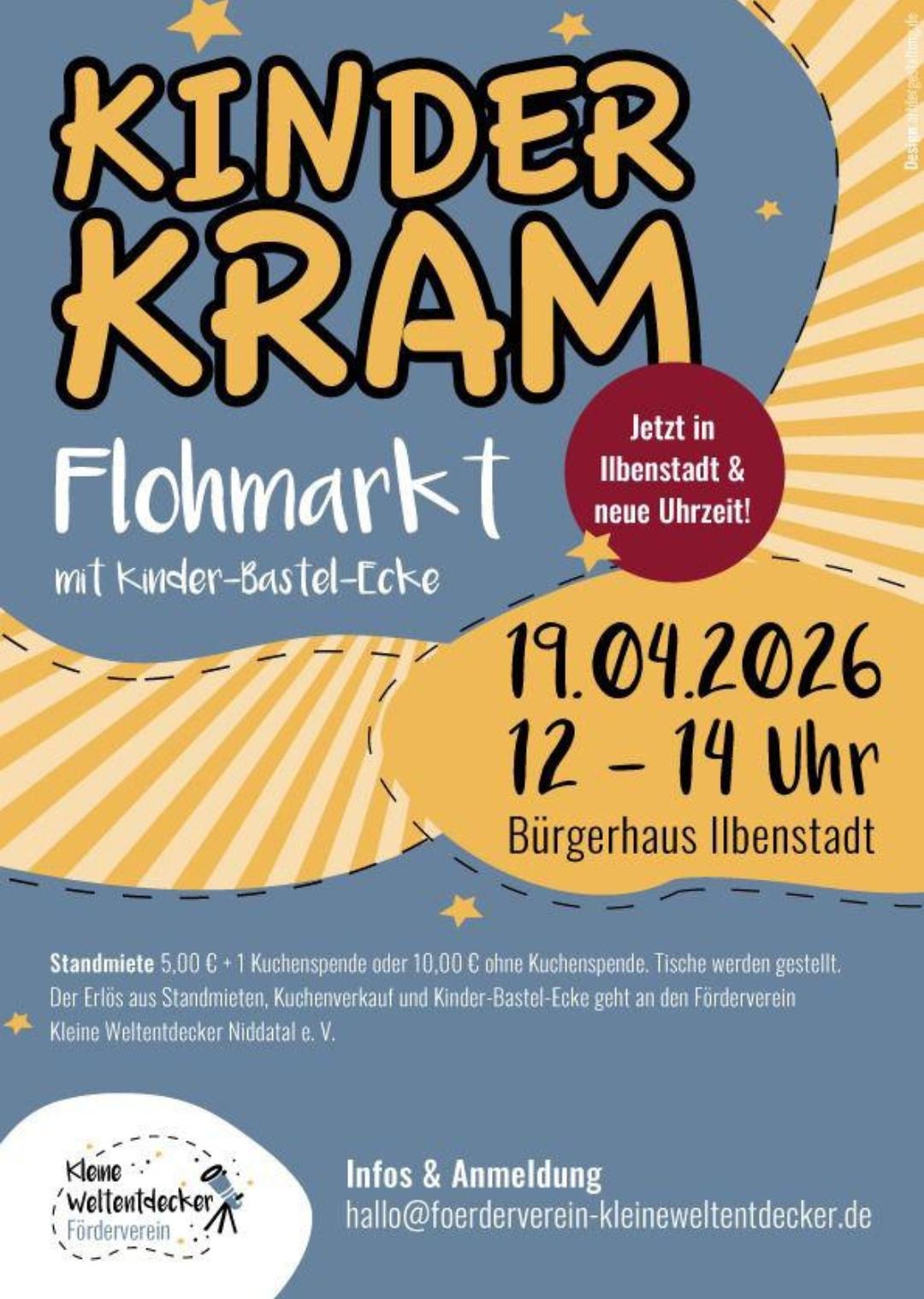 Lust auf einen Nachmittag voller bunter Entdeckungen und kreativer Abenteuer? Dann komm zum Kinderkram Flohmarkt im Bürgerhaus Ilbenstadt! Hier kannst du nicht nur tolle Schätze finden, sondern auch mit deinen Kids in der Bastel-Ecke kreativ werden.